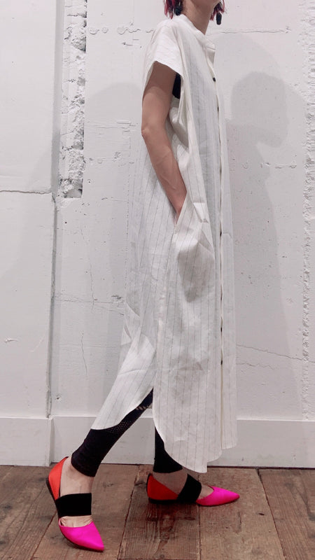 THE ARCHIVE:ストライプリネンタックスリーブシャツドレス