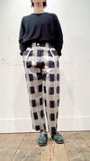 THE ARCHIVE:コットンサテンチェック柄ティーパードパンツ